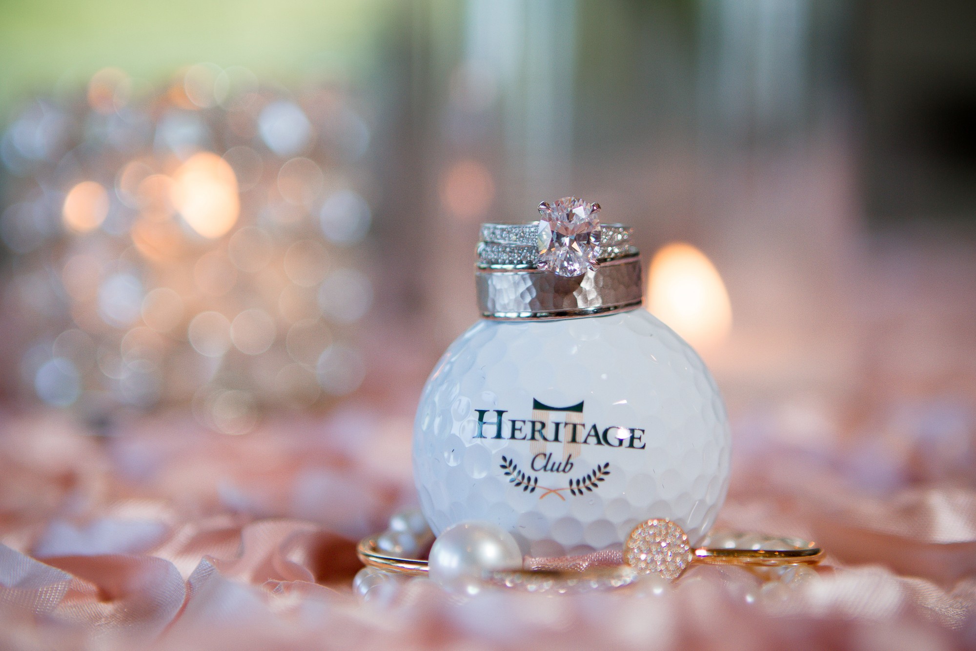 "Everyone at Heritage Club was so helpful in making our day perfect. We originally picked this venue for the backup rain plan. It is beautiful and kept our ceremony and reception spaces separated. The golf course is beautiful and provides so many places to take photos and capture the day. Sarah is AMAZING! She answered every call and email promptly, and made me feel so comfortable leading up to and especially on the day of our wedding. I had several unique ideas, and the team always had a way to help me execute. They made sure all of our guests were comfortable by providing a golf cart if they needed help, water on the warm day and so much more." -Amanda H., Bride